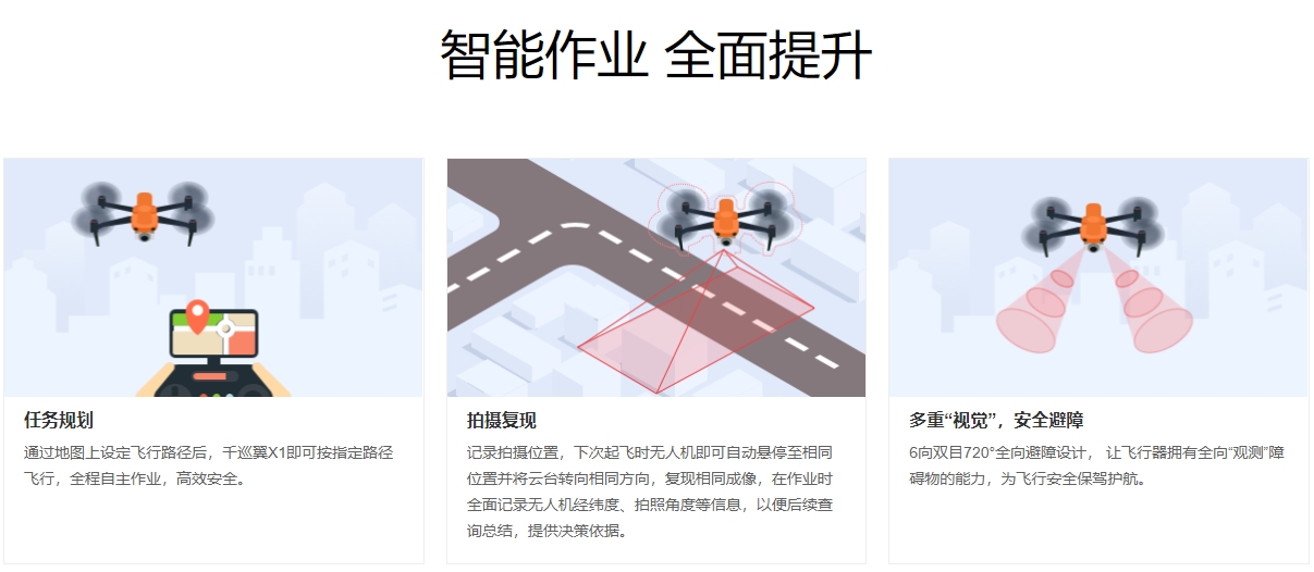 產(chǎn)品描述:千巡翼X1四旋翼飛行平臺是專為小面積航空攝影測量打造的一款便攜的四旋翼飛行平臺。以“免像控、靈活作業(yè)”為理念,可滿足極低投入成本、極低上手難度、極靈活作業(yè)模式等需求。